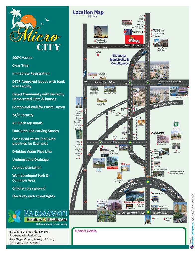 "Invest in Micro CITY, Shadnagar – where quality meets growth. With tech giants like Microsoft investing nearby, enjoy excellent returns, modern infrastructure, and on-time delivery. Your dream home and smart investment start here!"