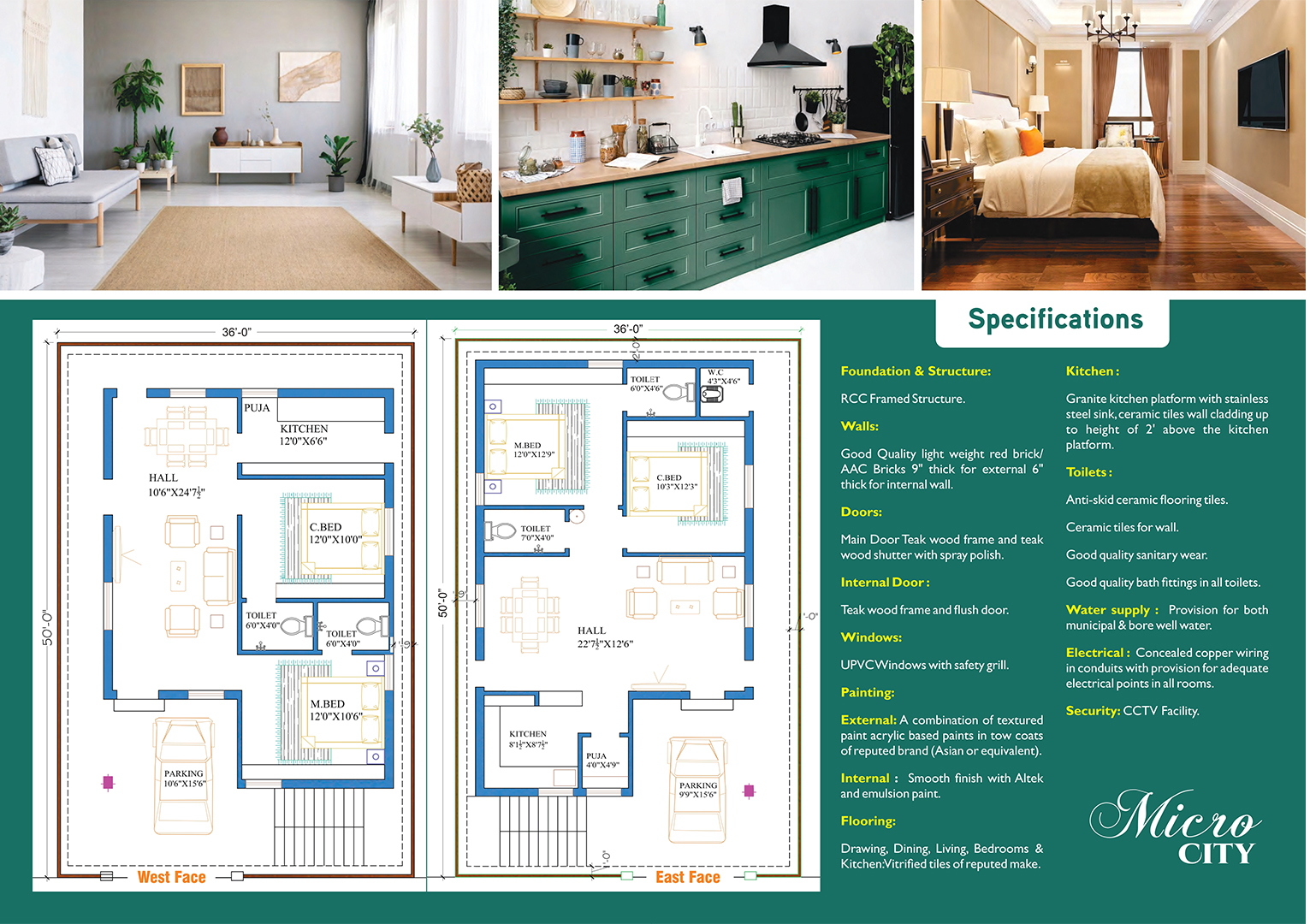 - RCC-framed structures with premium materials like teak wood and UPVC windows.
